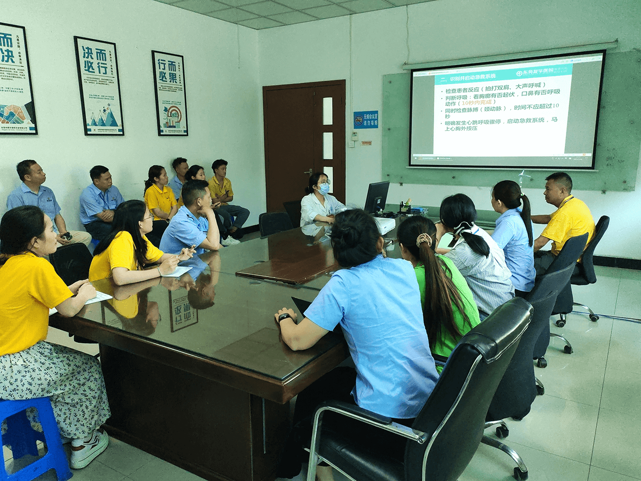 培训现场,东莞友华医院职检科讲师结合临床案例,系统讲解了心肺复苏的适用场景、操作要点及注意事项。并特别强调:“心跳骤停后的前4分钟是抢救的黄金时间,正确掌握CPR可在挽救生命的过程中起到重要作用。”