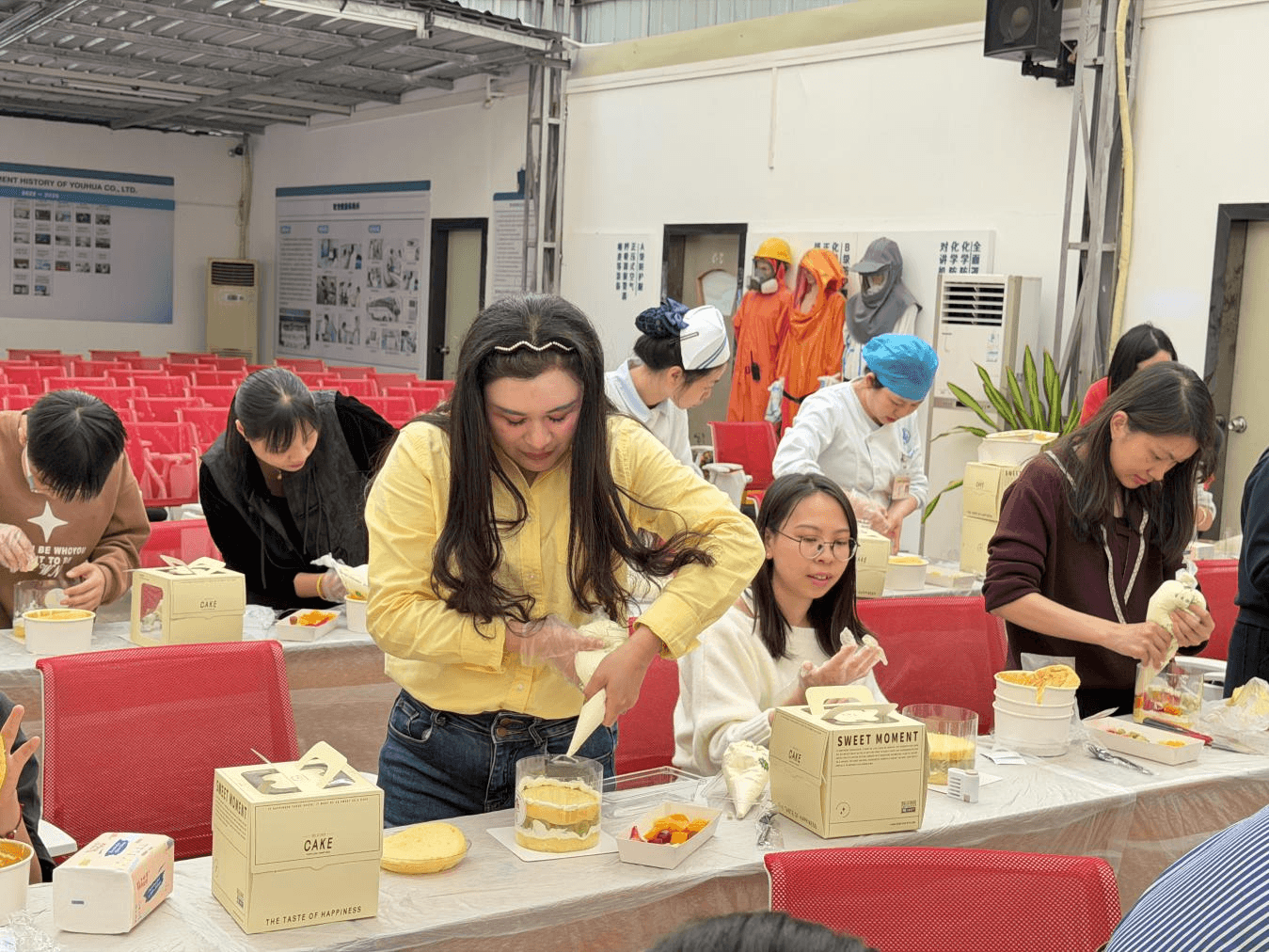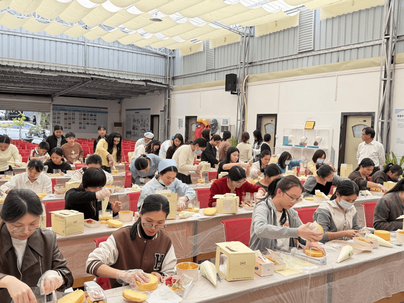 活动现场暖意融融、欢声笑语不断。大家组合搭档、分工协作,有的小心翼翼地涂抹奶油,有的精心挑选新鲜水果点缀,有的发挥创意勾勒独特造型,指尖翻飞间,原本普通的蛋糕胚,渐渐被赋予了温暖的心意与灵动的创意。奶油的绵密、水果的清甜,混合着大家的欢声笑语,填满了整个活动现场,每一个专注的眼神、每一次默契的配合,都彰显着友华女职工的温柔与活力。
