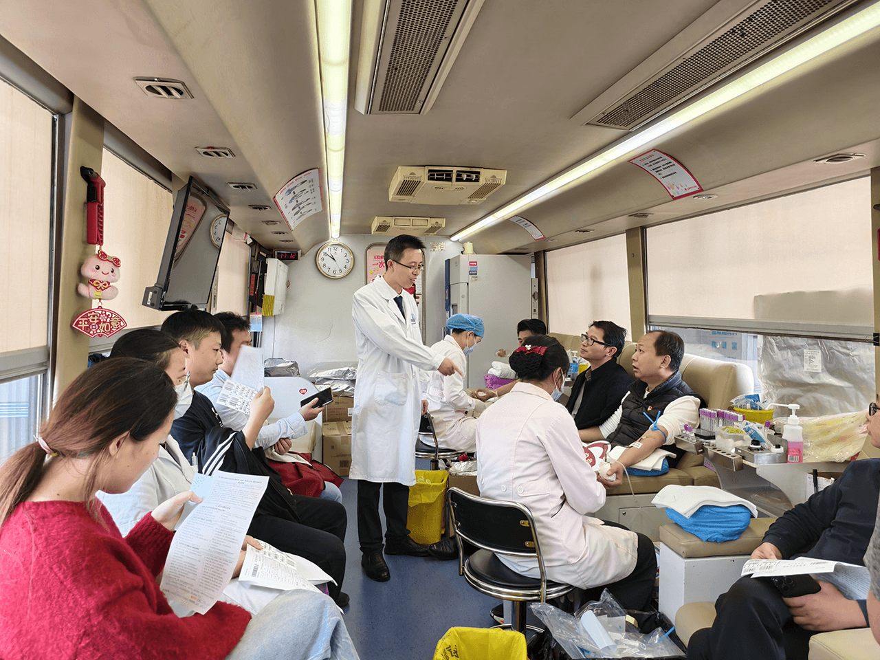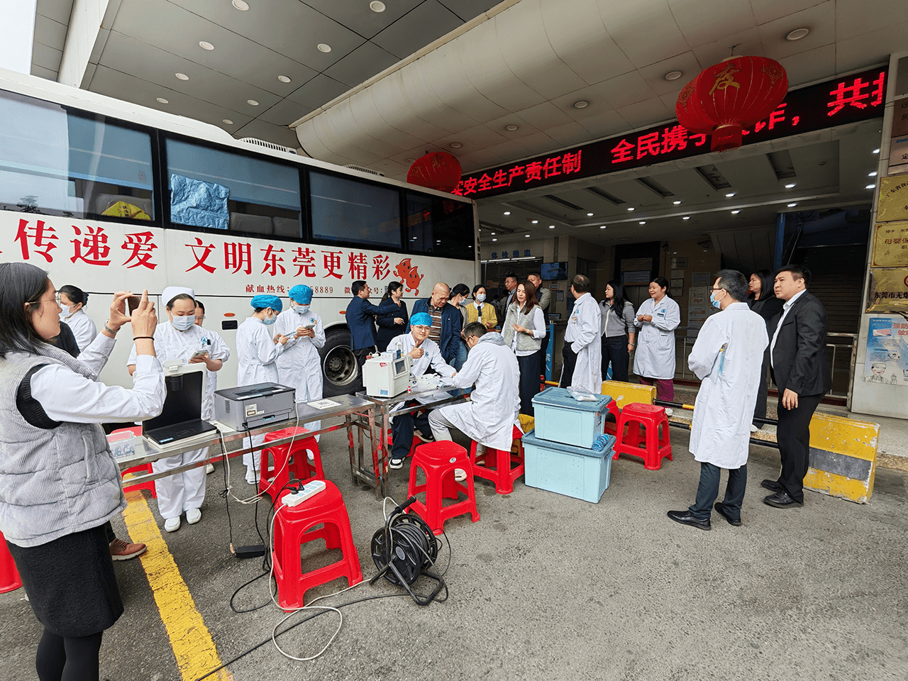 活动现场,在东莞友华医院党支部工作人员的有序引导下,各项流程规范有序、温情满满。市中心血站工作人员携带专业采血设备,严格按照无偿献血标准流程,有条不紊地为每一位献血者开展信息登记、健康征询、血压测量、血液初筛等前期准备工作,耐心解答献血相关疑问,细致讲解献血后注意事项,全力保障献血安全。