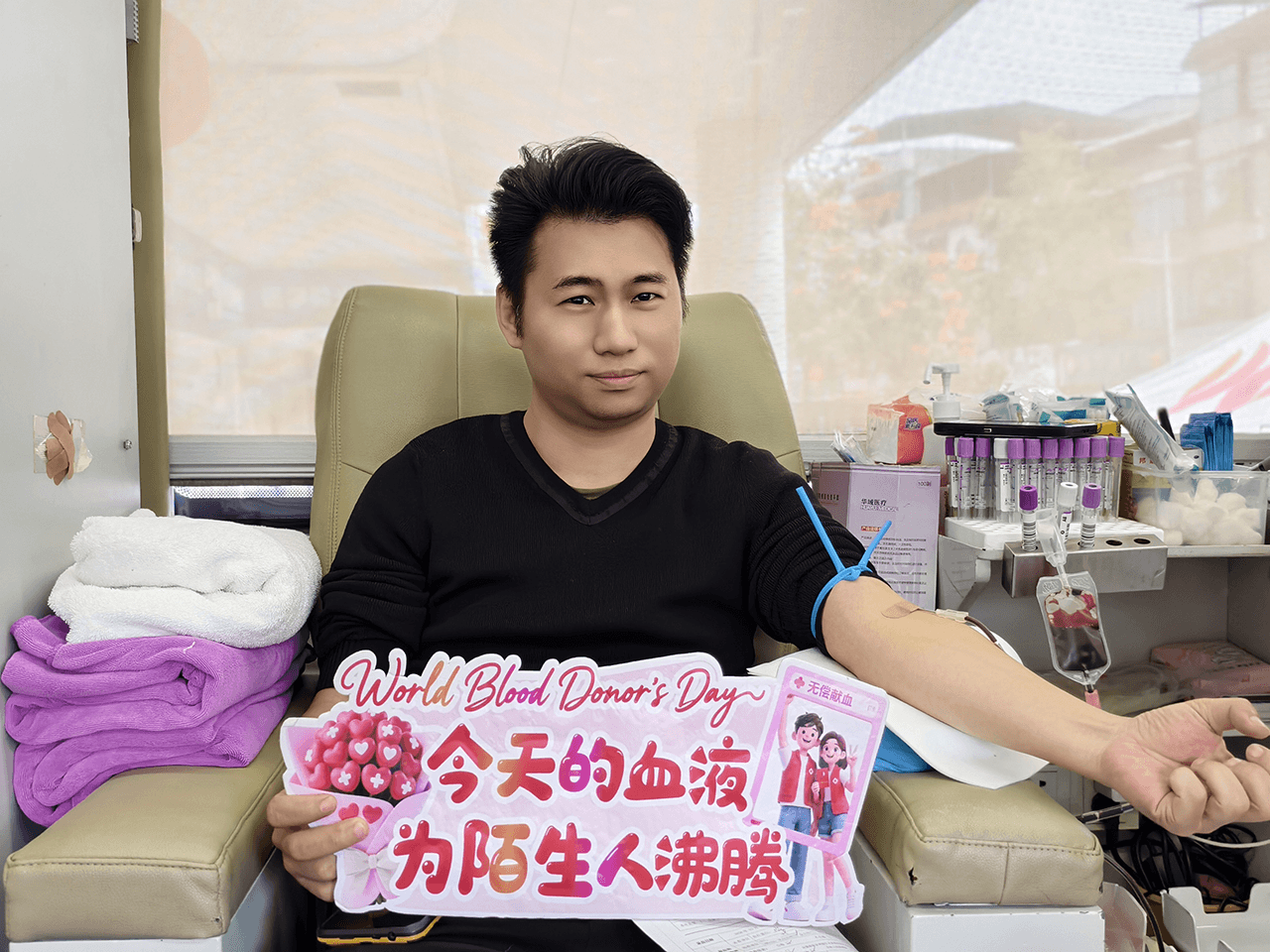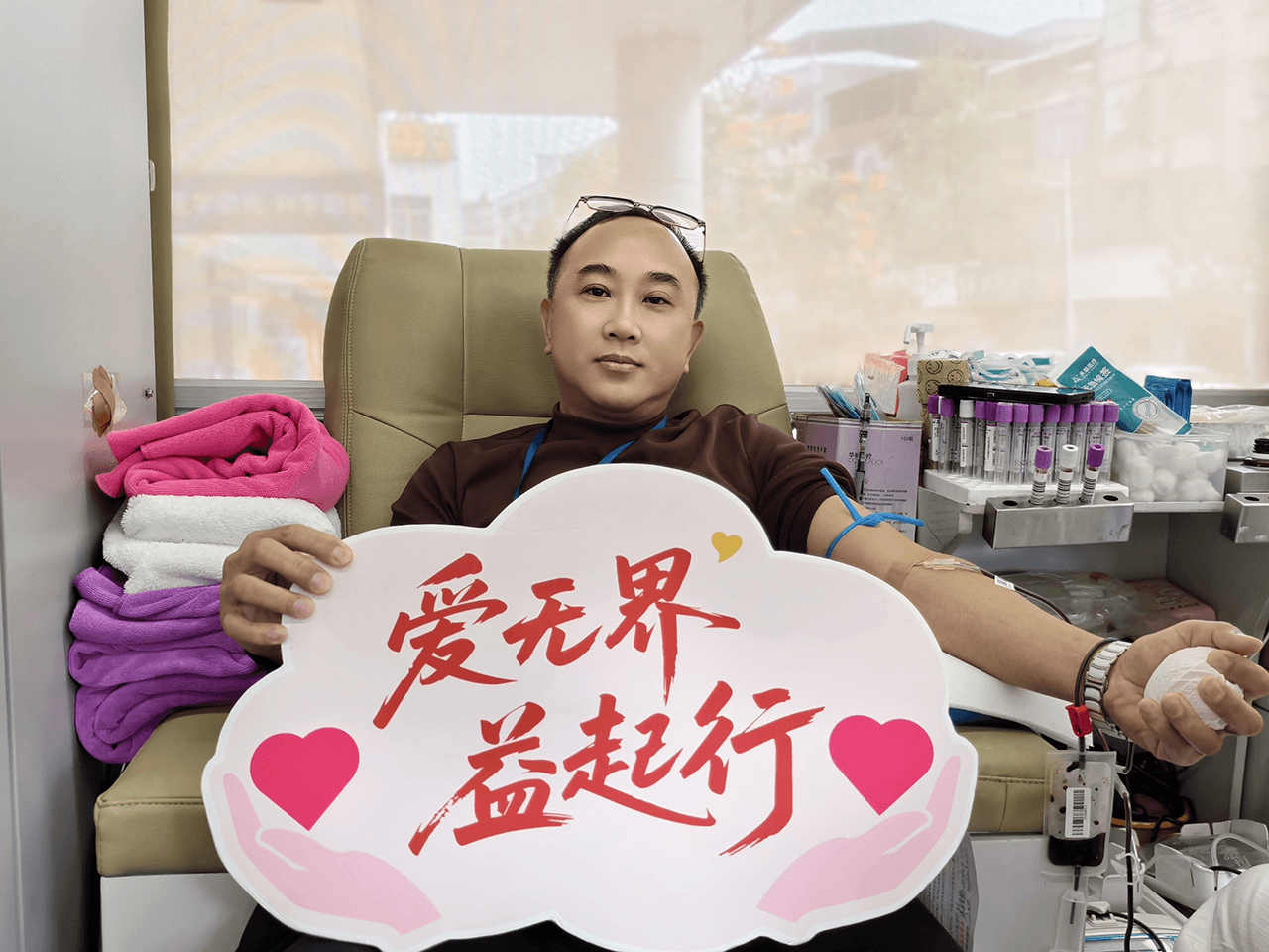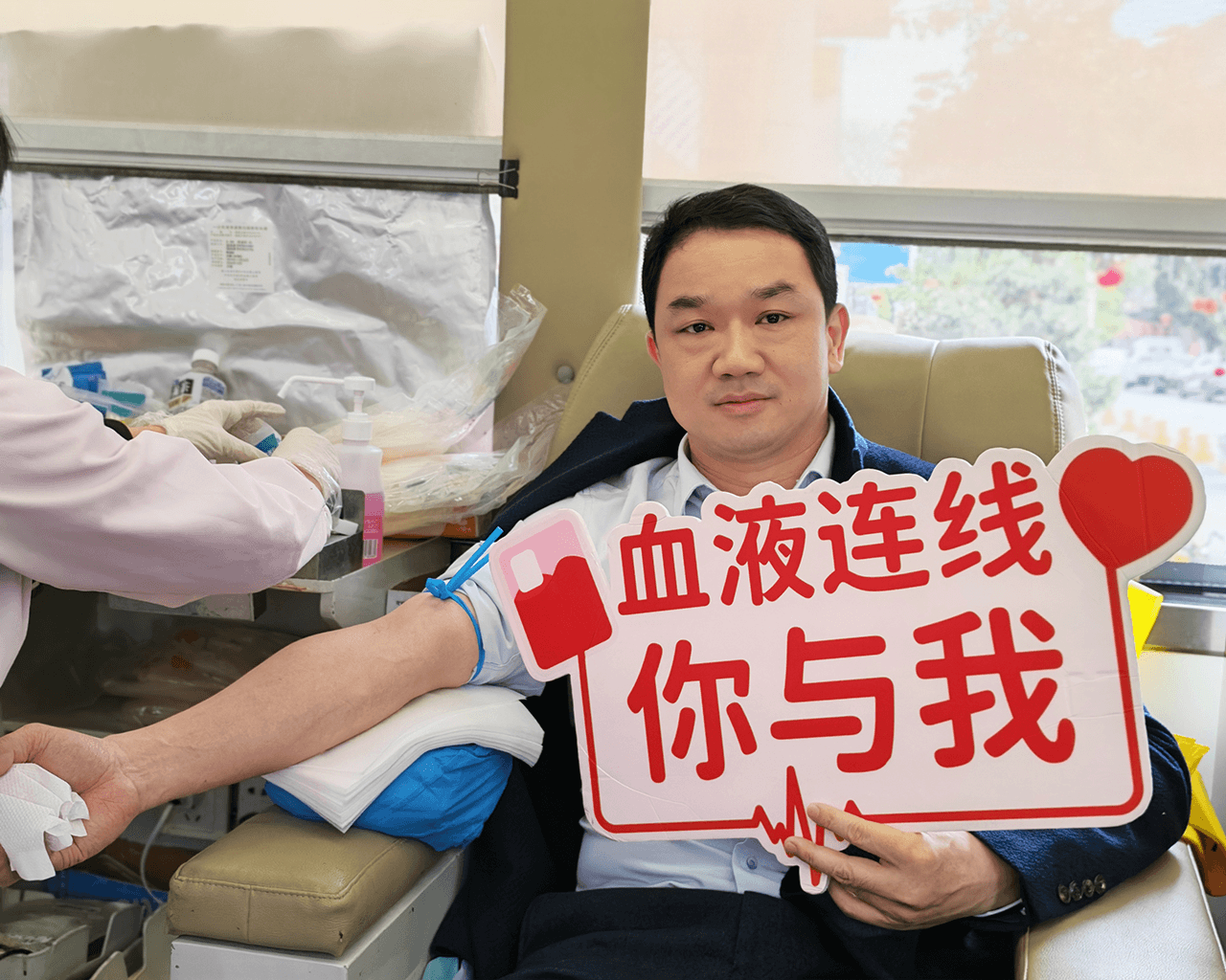 献血过程中,党员同志带头挽起衣袖、配合采血,医务人员依次有序参与,消毒、采血、按压,每一个环节都严谨细致、规范有序。殷红的鲜血顺着导管缓缓流入血袋,承载着东莞友华医院医务人员的爱心与责任,更凝聚着党支部引领下的公益力量,这些温热的血液将奔赴临床一线,为危重患者撑起生命的希望晴空。